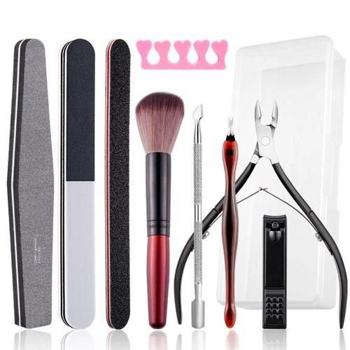 About this itemAll-in-one set: A complete manicure set including a nail file, cuticle pusher, nail clippers, cuticle scissors, nail brush, polishing strips and cuticle removal fork. Cuticle trimmer with cuticle pusher and cutter, cuticle removal nippers, professional stainless steel cutter, nails, toenails, pedicures and nail art toolsMulti-functional tools: Includes cotton swabs and nail polish remover to bring you a comprehensive at-home manicure experience. The manicure set is a must-have for those who are keen on keeping their nails in the best conditionPortable case: The compact and well-organized case can easily store and transport all tools.Durable construction: These tools are made of high-quality materials to ensure durability and precise application for long-lasting results.Affordable luxury: Enjoy professional-grade nail care at an affordable price. Whether you are a makeup artist, manicurist or beauty enthusiast, this set will allow you to achieve professional-grade results.