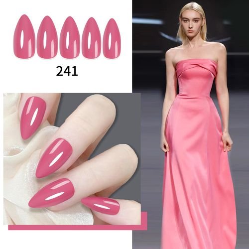 E241 24Psc Short Pointed Press-On Nails (Rose Pink)