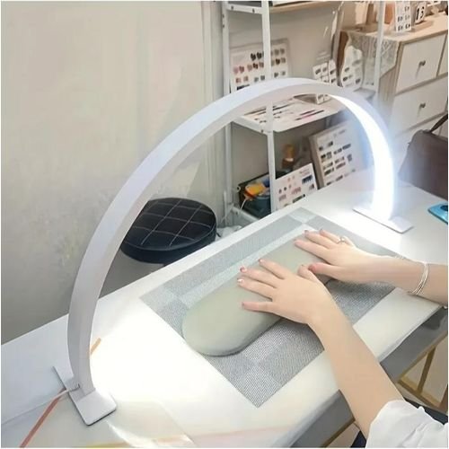 Specification Name: Half-moon table Lamp Material: aluminum Alloy Calor: whiteSize.Light 55*25cm/21.65*9.84 Inches Outside diameter 58.5*27.5cm/23*10.8 inches Number of lamp beads: Adaptor voltage: 100-240V -60Hz Adapter output: 12V 3A Color rendering RA>90 Color temperature: 3000K-60K, 3 kinds of color Temperature Power: 25W Applicable occasions: eyebrows, eyes and lips o, nail, extension Description Adjustable color temperature: The steple dimming function of the lash light makes it easier to adjust the brightne level from 0% to 100%. Color temperatures range fro000K (warm) to 6000K (daylight).Easy to install: LED half-moon table lamp is easy to install and does not require any special tools, which can bring you a lot of convenience. Stand stable 2 bases connected to both sides of the lamp base, thickened non-slip foam, stable and not easy to fall over.Energy-efficient and long-lasting: The minimalist half-moon lash light lasts more than 20,000 hours and features built-in high-brightne and high-contrast LEDs that display fine color contrast when working at close range.Comfortable lighting: Crescent shade eliminates shadows and dead spots. The bright floor lamp is an indispensable aistant for delicate profeional work, such as permanent makeup, oing and growth.Wide range of applications: The lash LED table lamp is suitable for most occasions, such as work, study, o or make-up, natural daylight beautician’s lamp for lash extensions, make-up, beauty, spa and salon servicesProduct List:1*Half Moon Table Lamp2 * Base1 *Acceory kit1*Adapter