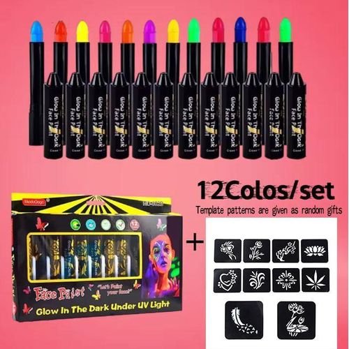 12Pcs Face Paint Crayon Vibrant Color Neon Body Paint Stunning No Odor Makeup Painting Face Body Paint Glow Stick Party Supplies